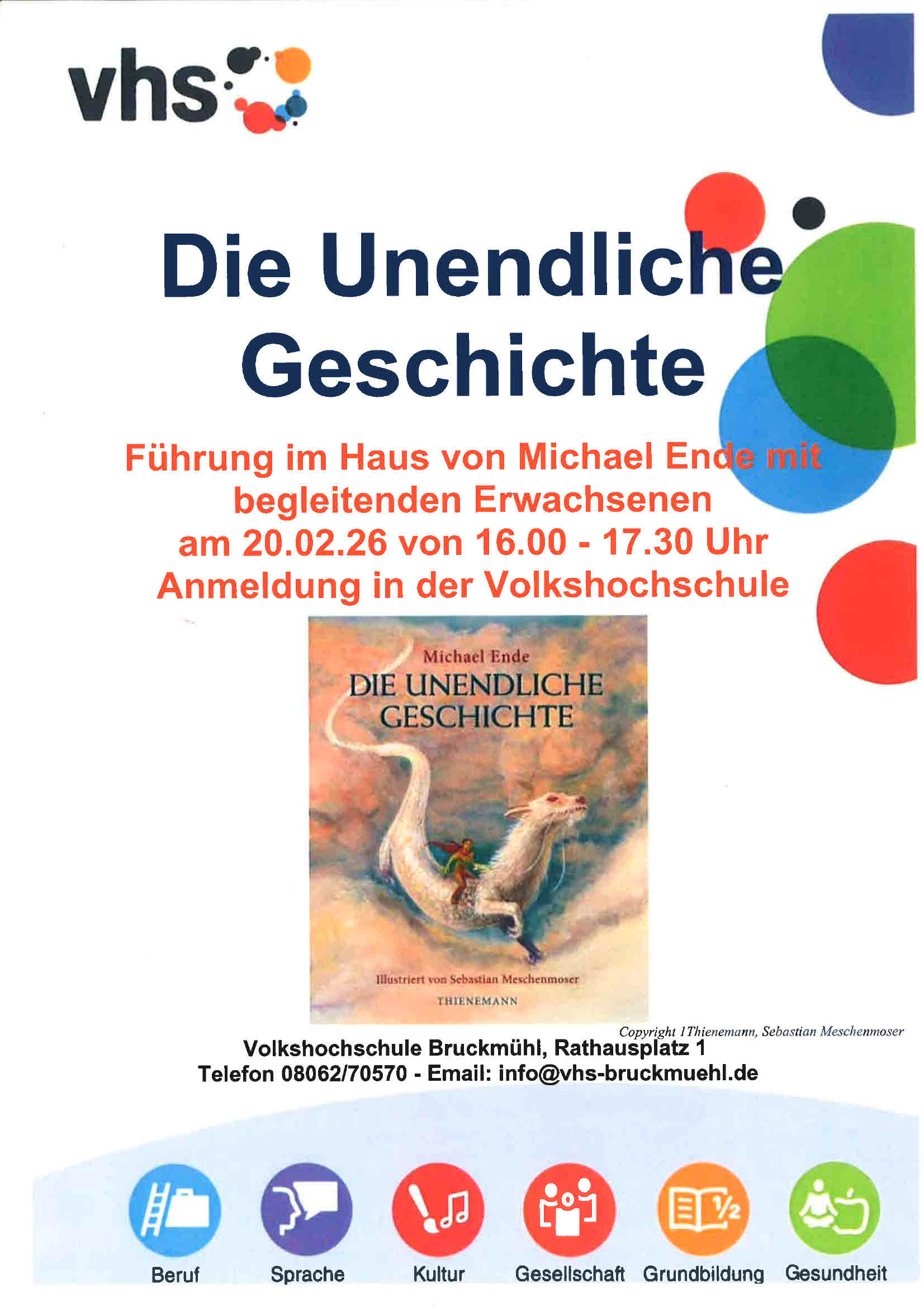 Es ist eine ganz besondere Führung für Kinder, Jugendliche und Erwachsene: Nicht Orgeln, sondern Michael Endes Roman „Die unendliche Geschichte“ steht am Freitag, den 20.02.2026, im Zentrum einer kurzweiligen Führung im Alten Schloss Valley. Dr. Sixtus Lampl wird die Besucher und Besucherinnen auf den Dachboden des Orgelzentrums Valley führen. Warum dorthin?
