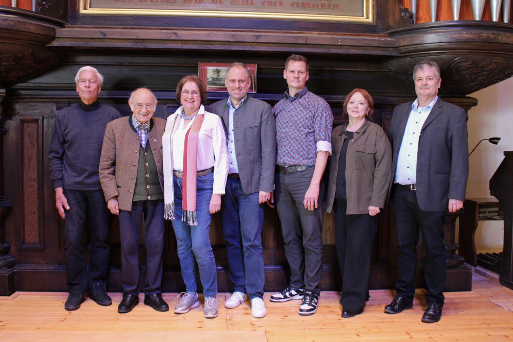 Von links nach Rechts: Dedo Töpfer (Kassenprüfer 2023); Clemens Schäfer (2. Vorsitzender); Hannes Düker (Schriftführer); Dr. Sixtus Lampl (Vorstand gem. Satzung); Anne-Maria Greindl (Kassenprüferin 2023); Irene Wienböker (Kassenwartin); Gregor Dworzak (1. Vorsitzender)